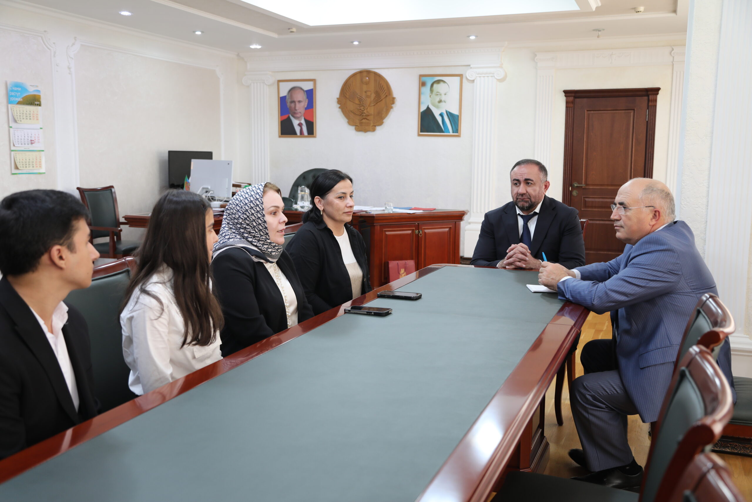 Министр сельского хозяйства и продовольствия Республики Дагестан Шамиль Рамазанов встретился с девятиклассниками Тюбинской средней общеобразовательной школы Кумторкалинского района – Ларианной Яхьяевой и Маратом Хасаевым, а также с завучем Анисат Османовой и педагогом Эльмирой Айдековой. Юные дагестанцы заняли первое место во Всероссийском конкурсе «Школьный агростартап».
