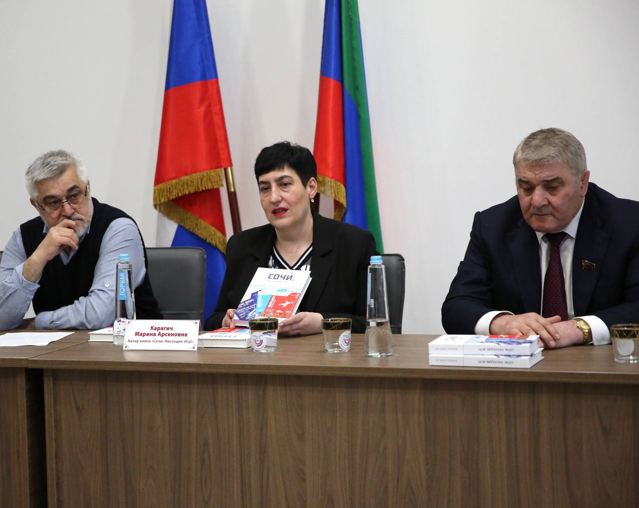 Автор книги, Марина Карагич (помощница депутата Госдумы, трехкратного олимпийского чемпиона Александра Карелина), выступила перед аудиторией, в которую вошли воспитанники спортивных школ, тренеры и прославленные дагестанские борцы.