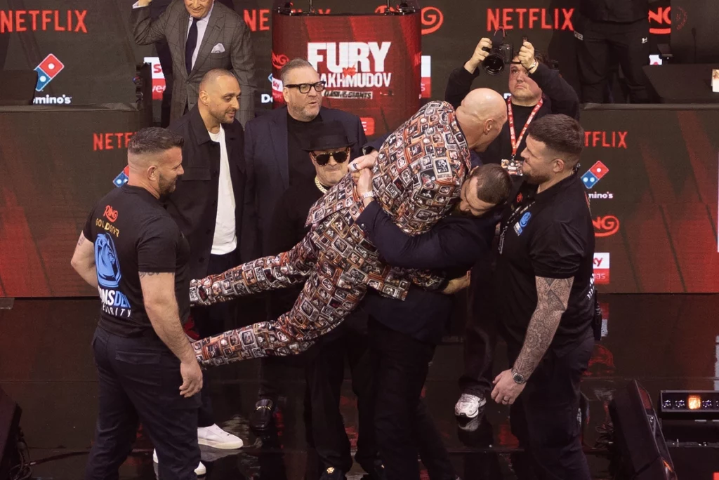 Во время стердауна произошел забавный эпизод — Махмудов сцепил руки за спиной Фьюри и приподнял его. Тайсон не обиделся. Вообще создается впечатление, что парни относятся друг к другу без агрессии, а все заявления Фьюри о «разбитых физиономиях» — лишь часть шоу. То есть поколотить-то друг друга они действительно намерены. Но для спортсменов это только «бизнес и ничего личного».
