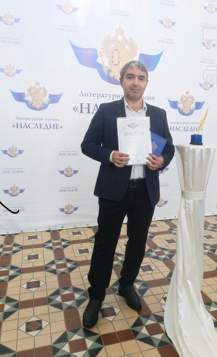 На торжественной церемонии в Соборной Палате Москвы он был награждён дипломом финалиста премии с подписью Великой княгини Марии Владимировны Романовой и звездой «Наследие» II степени. Это подчеркнуло его значимый вклад в русскую литературу и культурное наследие страны.