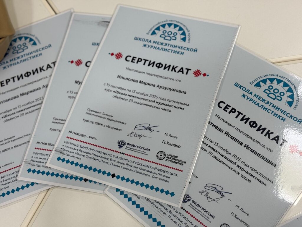 Сертификаты вручал заместитель руководителя Штаба общественной поддержки партии «ЕР» в РД, руководитель дагестанского отделения ГМЖ. Он отметил значимость проекта для региона, подчеркнув, что подготовка молодых журналистов, владеющих навыками межкультурного диалога, является важным вкладом в укрепление общественного согласия.