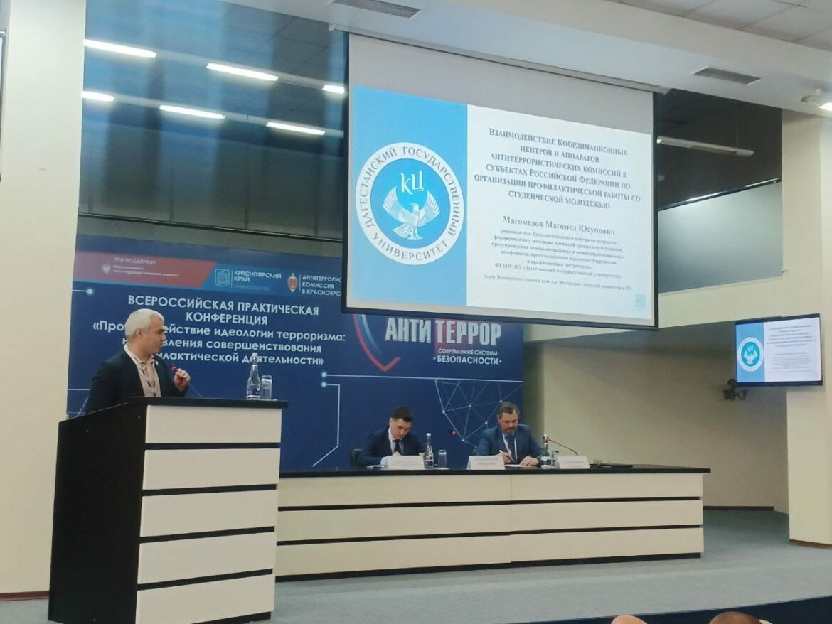 Делегация Республики Дагестан принимает участие в XIX Всероссийском специализированном форуме «Антитеррор. Современные системы безопасности», который проходит в эти дни в Красноярске. В состав делегации вошли начальник отдела обеспечения деятельности Антитеррористической комиссии в РД Ашама Ашамаев, руководитель Координационного центра Дагестанского государственного университета Магомед Магомедов и сотрудник Министерства образования и науки РД Газимагомед Мухумагазиев.