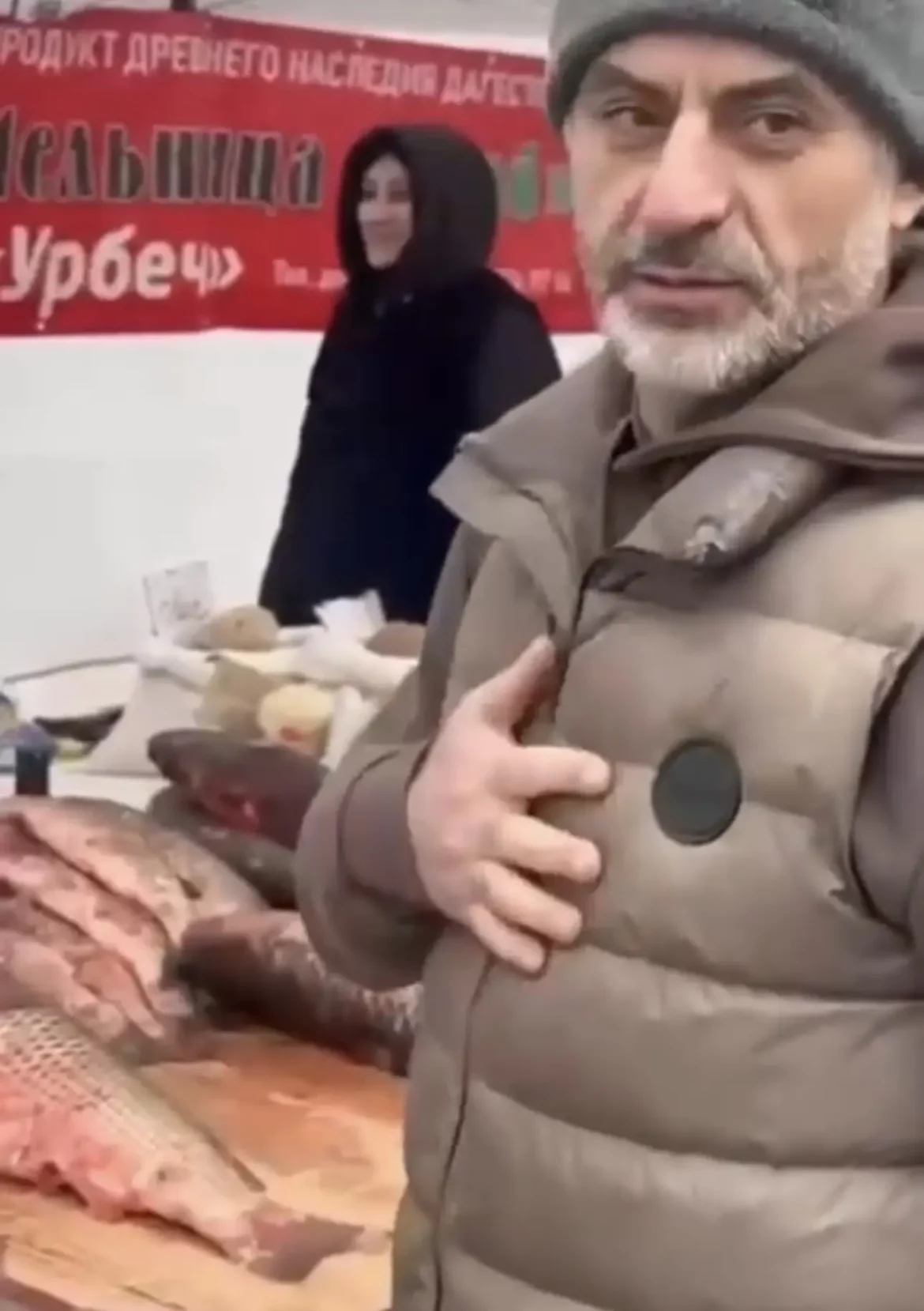 Посетители наслаждаются большим ассортиментом продуктов, в том числе и свежей рыбой. Особым гостей стал известный актер и юморист Юсуп Омаров.