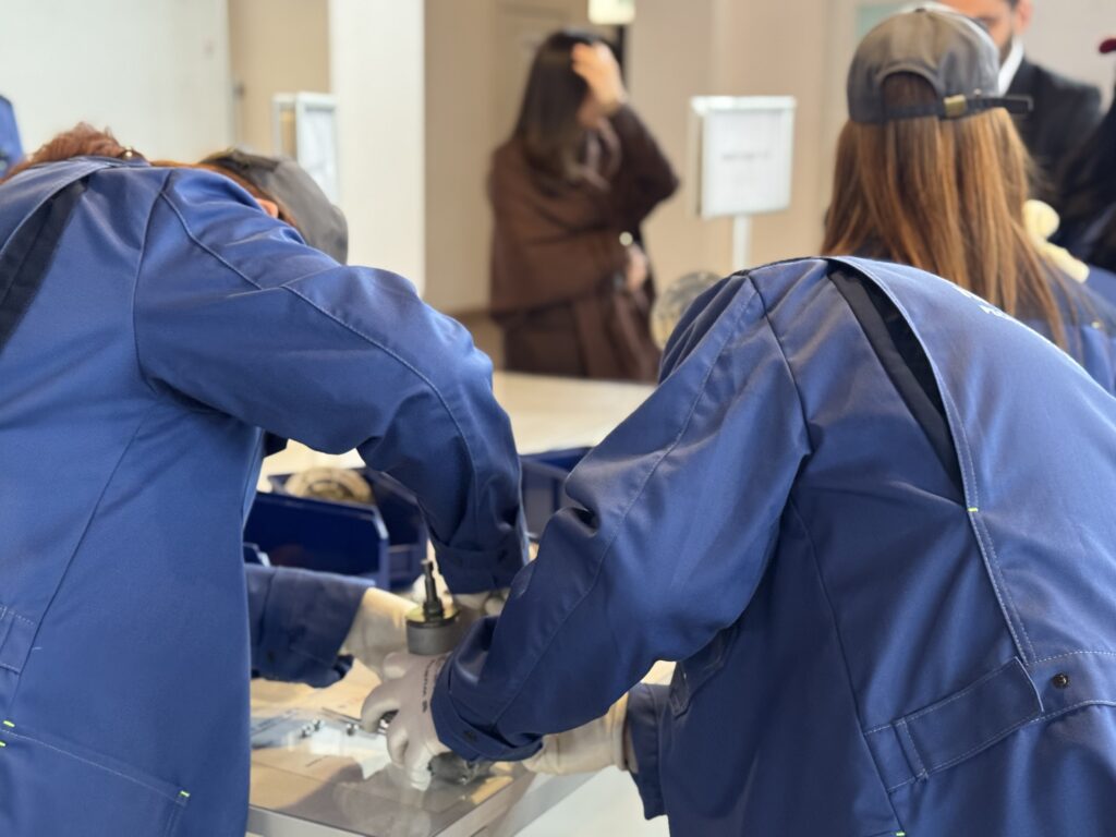 Журналистов разделили на команды по несколько человек, каждая из которых занималась сборкой пульта управления регулятором давления газа.