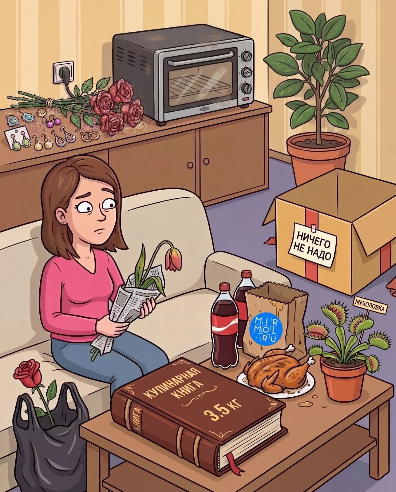 Корреспондент «Мирмола» Зухра Омарова «презентует» список подарков, после которых праздник может внезапно превратиться в семейное совещание с последующим увольнением.
