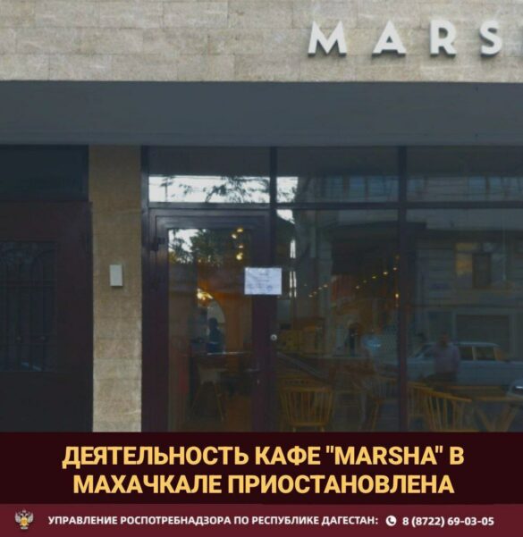 Роспотребнадзор приостановил работу махачкалинской кофейни «MARSHA» на улице Гаруна Курбанова, 3 из-за нарушений санитарных норм.
