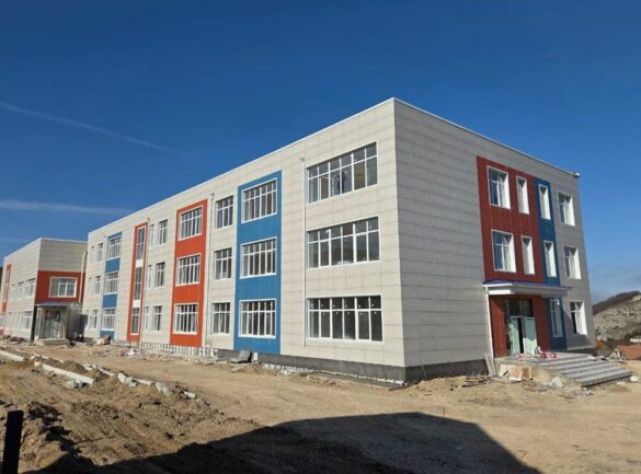 На объекте активно ведутся внутренние отделочные работы: установлены двери в классах, укладывается напольная плитка, завершается монтаж электрических сетей и системы пожарной вентиляции.