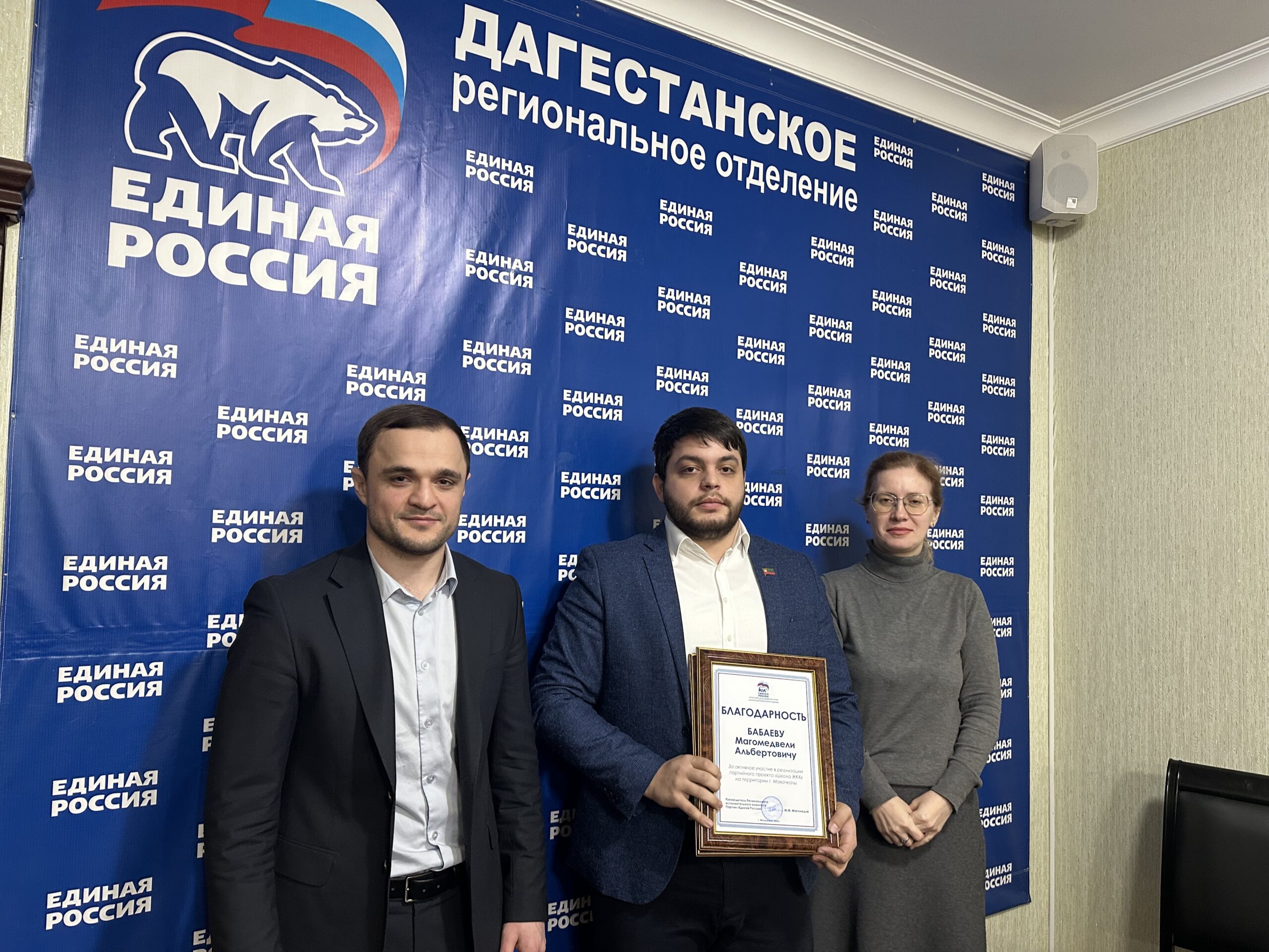 В Махачкале прошло торжественное мероприятие, на котором членам Молодёжного парламента при городском Собрании депутатов были вручены благодарности. Награды активистам вручил руководитель Регионального исполнительного комитета партии «Единая Россия» Магомед Магомедов за их значительный вклад в реализацию федерального партийного проекта «Школа ЖКХ».