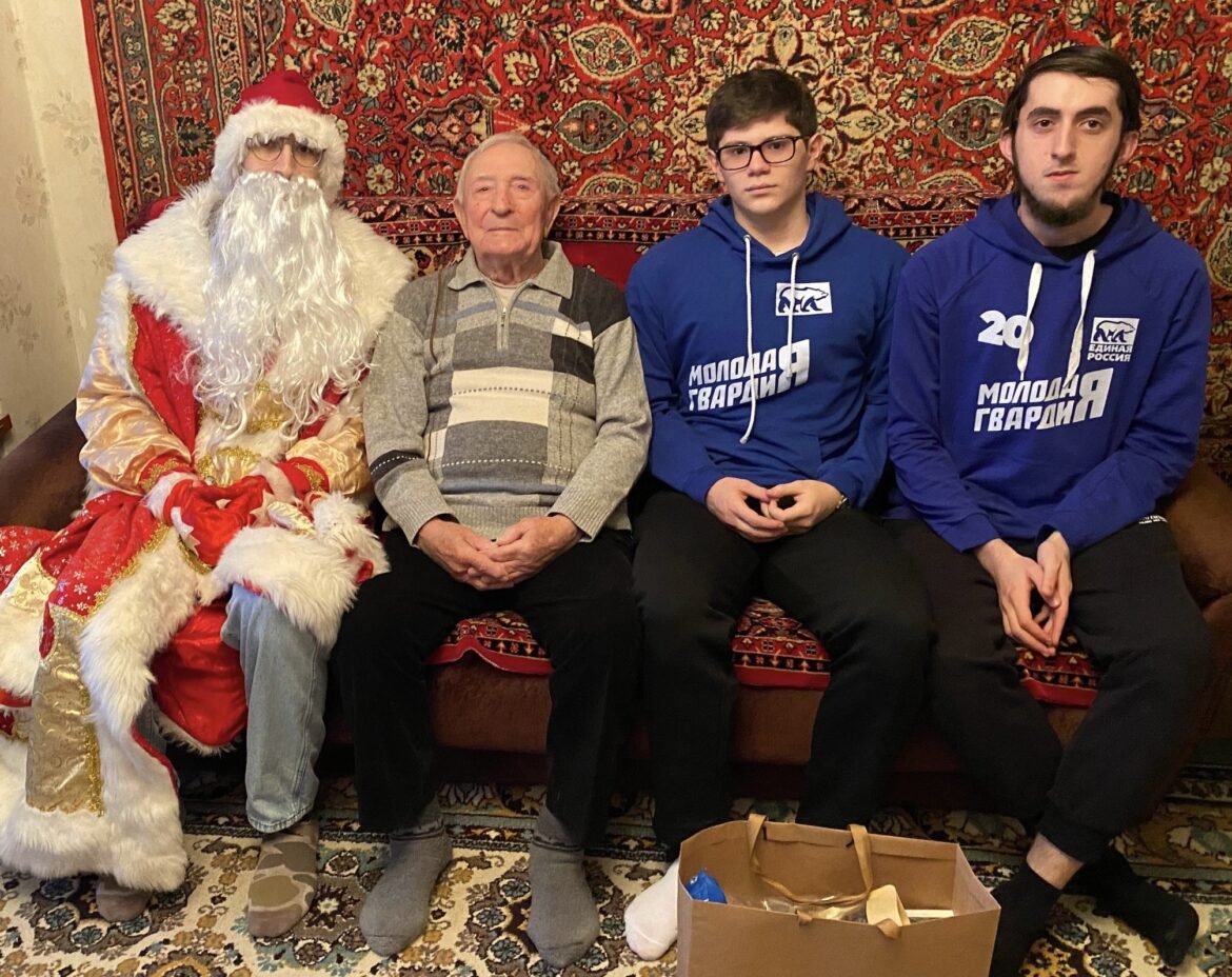 В Дагестане продолжается добрая праздничная традиция — акция «С Новым годом, ветеран!», инициированная партией «Единая Россия». Активисты регионального отделения «Молодой Гвардии» навестили участника Великой Отечественной войны Юрия Антоновича Петрухина, чтобы поздравить его с Новым годом и Рождеством.